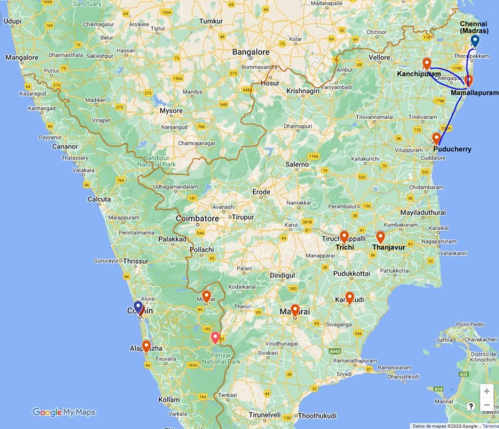 Al matí sortida cap a Pondicherry – Pondicherry (o Puducherry), un assentament colonial francès a l’Índia fins a 1954, ara és una ciutat del Territori de la Unió limitada per l’estat del sud-est de Tamil Nadu. El seu llegat francès es conserva al seu barri francès, amb carrers arbrats, viles colonials de color mostassa i boutiques elegants. Un passeig marítim corre al llarg de la Badia de Bengala i en passa diverses estàtues, inclòs un Gandhi Memorial de 4 m d’alçada. Situada de forma atractiva a la Badia de Bengala, amb belles platges verges, aquesta sorprenent ciutat és un retrocés a l’època colonial quan era un enclavament francès, però avui dia està ricament barrejada amb la cultura tàmil.